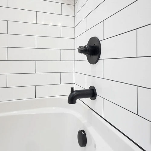 Our pre-cut tile panels are easy to handle, adhere with construction adhesive, and finish with grout for a fast, clean, professional look.